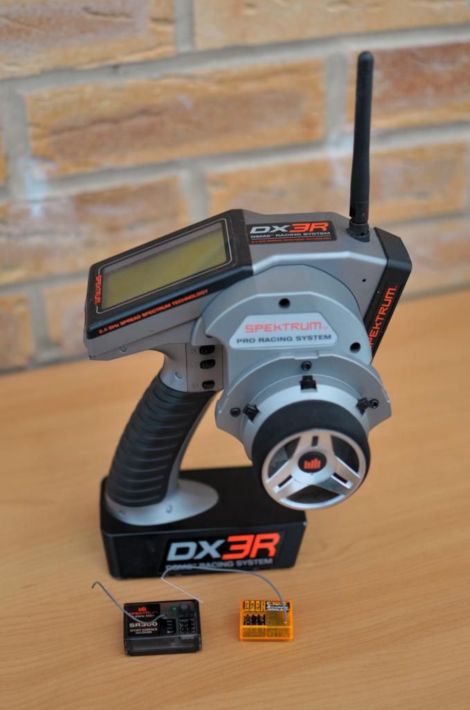 Spektrum DX3R Pro Steerwheel DSM2 plus 2 receivers - 1x SR300 2x Orange DSM2 micro receiver. Everything is in full working order there are some wear and tear marks on the steerwheel from use, loss of paint to a few corners, etc but it's never missed a beat. Will include a set of user instructions I printed off for it as I don't have the original set. 2nd orange receiver not pictured but same as one shown. ![]()