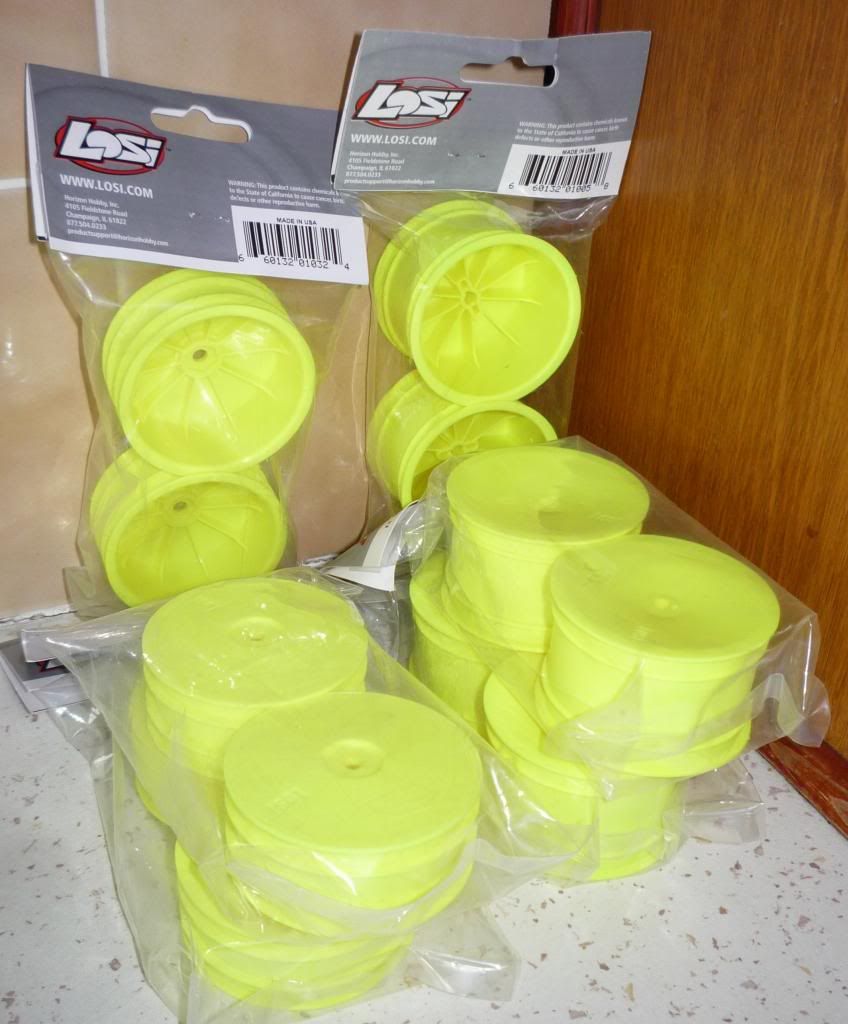 Fronts 3 packs x 7047 £4.50 a pair Rears 3 packs x 7140 £4.50 a pair http://i1100.photobucket.com/albums/...ps2c12fd9d.jpg AE Rims Fronts 4 packs x 9588 £4.00 a pair Rears 1 pack x 9589 £4.00 http://i1100.photobucket.com/albums/...ps626cbda9.jpg JConcepts Fronts 1 pair x 3305 £3 Rears 2 pair x 3306 £7 link in the morning HN Foams 2 pair B-38 £15.00 Moulded yellow foam inserts JConcepts 8th Truggy Rulux Rims 1 pack 3309 £10.00 Prices plus postage PP available. Please pay the fee's or use gift. The choice is yours. Lots to go over the coming months ![]() o0ple feedback http://www.oople.com/forums/showthread.php?t=19370