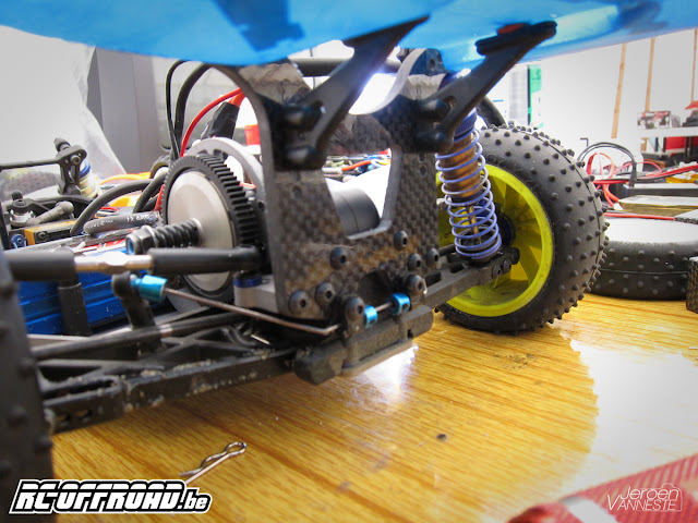 Friday the car was put on the track and as far as I know, no setup changes were made apart from weight added on top of the servo to help keep the nose down, at least until the last final when heavy rain forced a setup change.