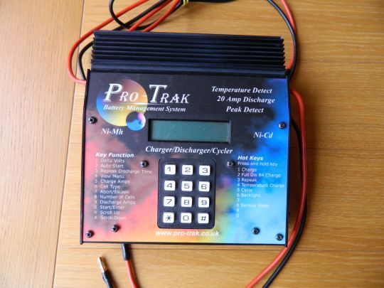 Bullet connectors to connect to power supply and also for output. No other leads. All info about these chargers along with downloadable extensive manual can be found here:- http://www.pro-trak.co.uk/ It does not have the front decal saying li-po/li-fe, but the unit has been upgraded to allow all li-po & li-fe charging features. Version 12.37 20D Excellent working condition £45 delivered ![]()