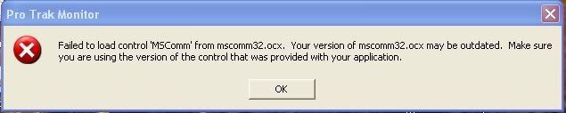 Is there an mscomm32.ocx file in the folder that the Pro-Trak software runs from ?